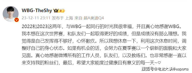-希望Theshy能得到他需要的休息,尽管我想这意味着他在社交平台上接下来可能会非常活跃,这很好。这对WBG来说是个可怕的消息