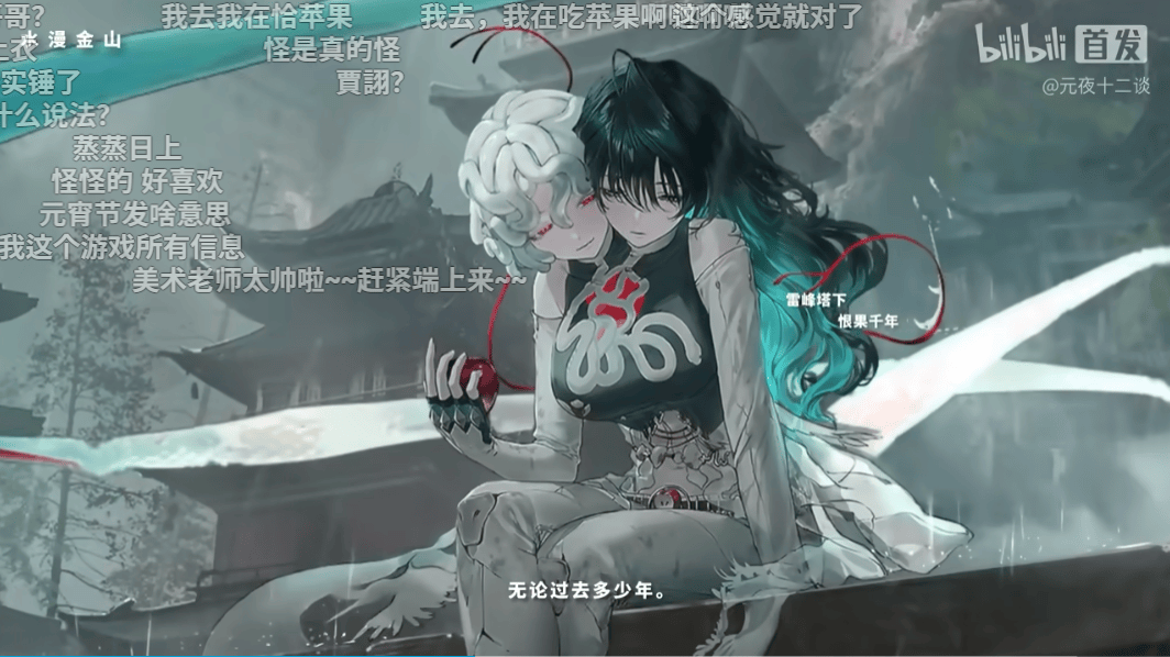 以人物设计为例。PV中有一个对应“水淹金山寺”片段的角色——青白一体的双人设计。虽然看起来有些诡谲,但这种反常规的设计却非常打动玩家。不少玩家发弹幕表示想要抽取这个角色。