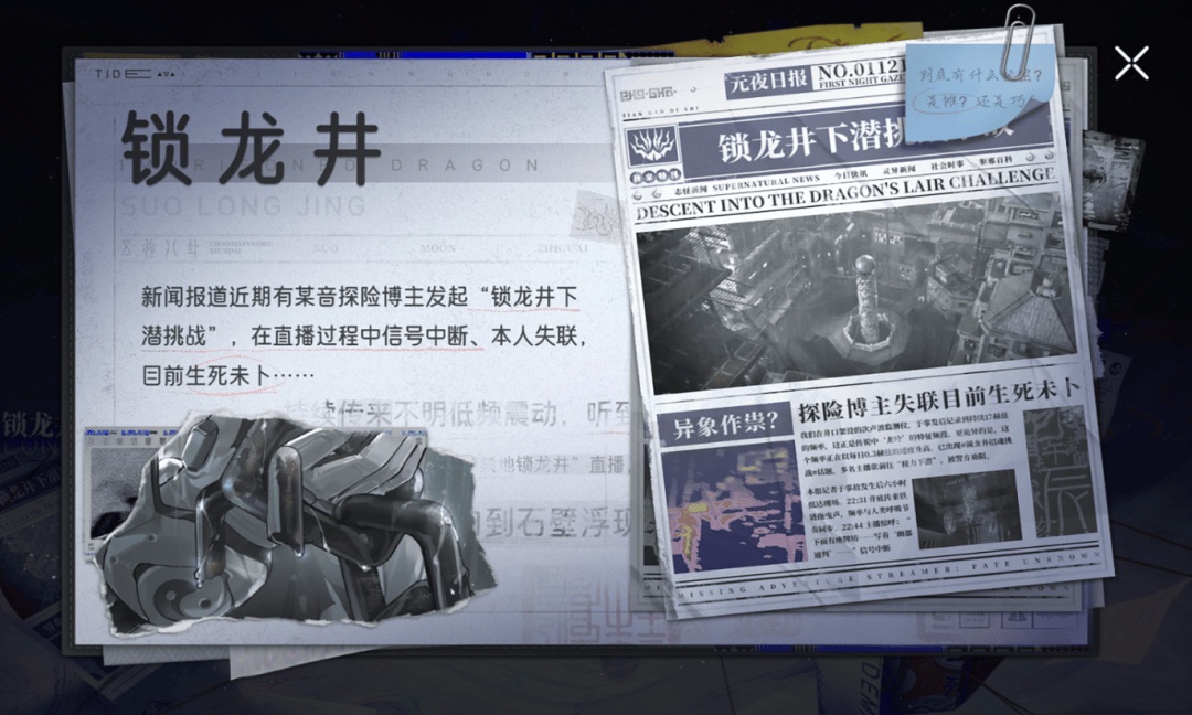 比如画面中出现的“悬剑桥”与“锁龙井”,其原型都来自民间镇压异类的典故。游戏也将这类故事做成了需要探索解谜的章节之一。