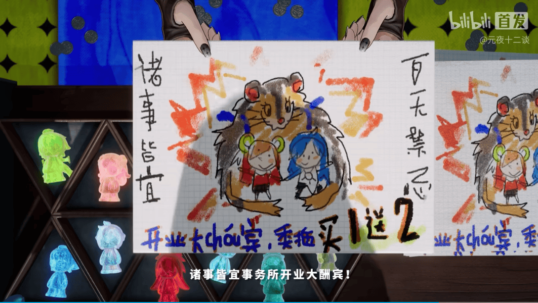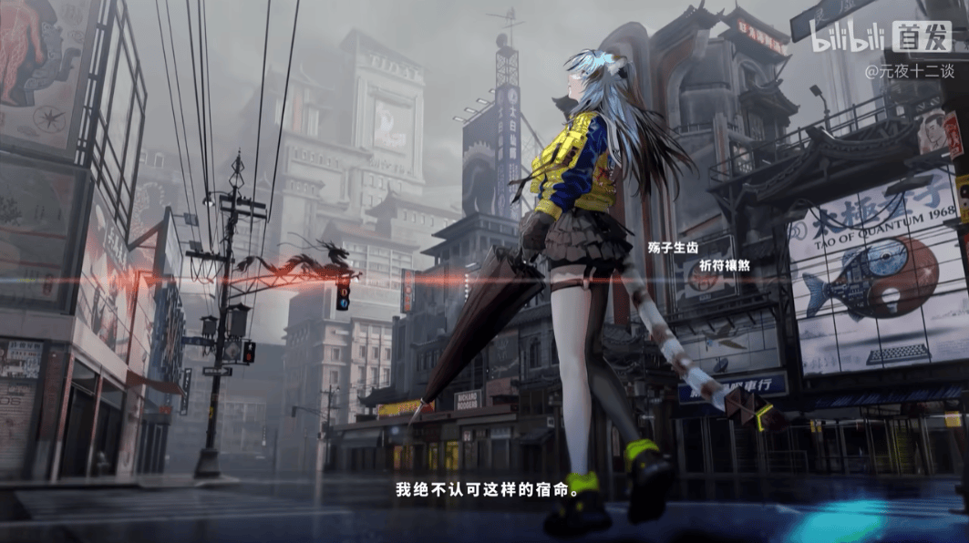 PV中随便截取一帧,都能看到民俗与新潮融合的细节。例如,街头那些带有道教色彩的长幡、场景中的招牌文字、角色的服饰花纹,甚至是路灯的造型,都巧妙加入了传统图腾或符号。