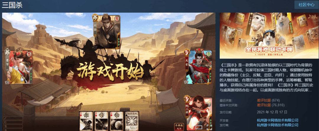 如果只说“游卡”这个名字,部分玩家可能不太了解,但如果说它是做出了“好评如潮”的《三国杀》的厂商,想必大家都知道是谁了。