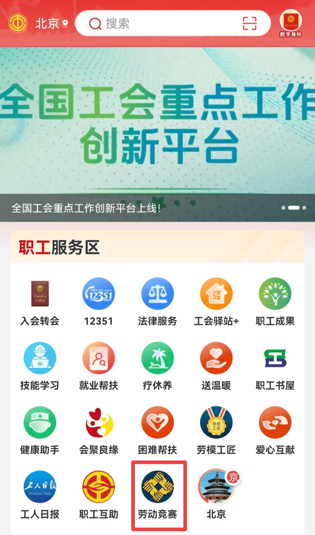 2. 点击“劳动竞赛”,点击轮播图,进入决赛专区。