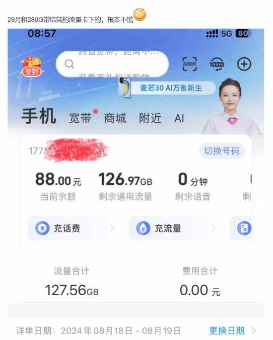 但也有网友是“刻意为之”,其高额的流量包表示“根本不慌”。