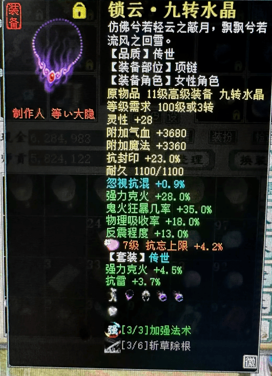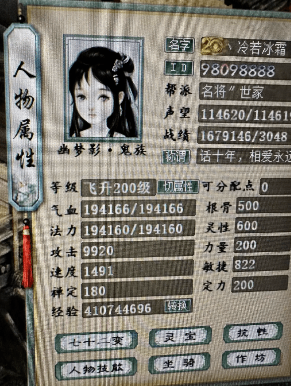 玩家说这是他自己亲手打造的四阶新版根骨仙器秒鬼,希望有共同爱好的老铁可以交流一下心得,下面话不多说,开始展示属性、装备以及伤害。