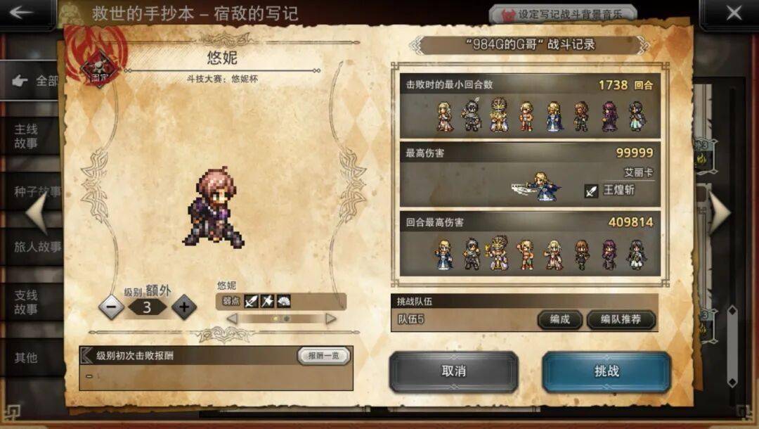 在2025年3月时的低配条件下能打掉这几个货实在是太折磨人,当时悠妮无法秒掉,只能靠泳菲和林悠磨掉所有小怪,眼睁睁看着好不容易打到残血的悠妮慢慢回满,小怪处理完毕后全员用神兽拉起来再揍一遍,最终磨了1738回合,从上午9点多自动战斗到了晚上8点才结束,手机有两次差点自动关机。