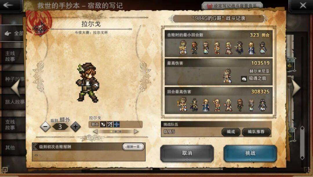 说到斗技大赛这个玩法,G哥能回忆起来的就是每个家伙都要手动刷100次,生生刷满了8个,游戏时长被多刷出100多个小时;那时的国服角色还处于5星时代,缺了某个对策角色的话,这8个斗技大赛就会给我们制造不小的麻烦。比如打拉尔戈如果有,打缇奇莲如果有,都能降低很大的难度。