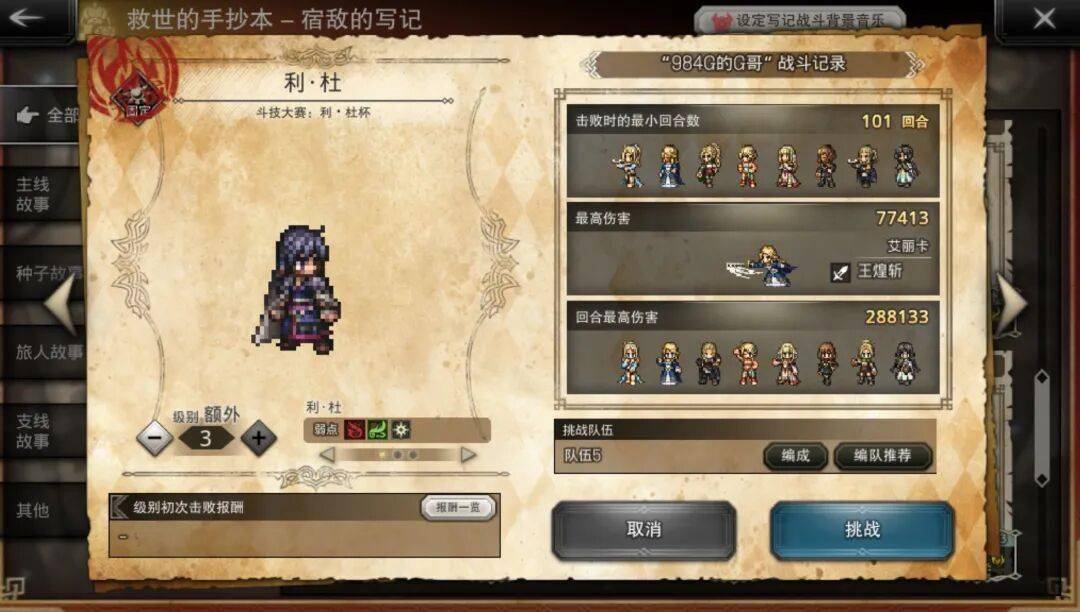 以上的回忆只是按照斗技大赛的难度来说,如果本次斗技大赛卫冕赛的难度是按照宿敌Ex3的标准而设,那G哥可就不困了!不瞒大家说,自从在5星时代打完了斗技大赛这堆宿敌之后就再也没和他们打过架,主要原因是舍不得当时的通关记录。