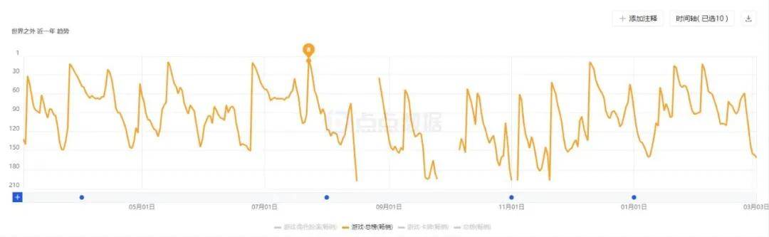 网易《世界之外》在2025年过得并不顺利,但巨大的舆情波动对其造成的影响有限,凭借稳定的基本盘,游戏每次版本更新基本都能冲进畅销榜前50,近一年也都在畅销榜TOP150里徘徊。