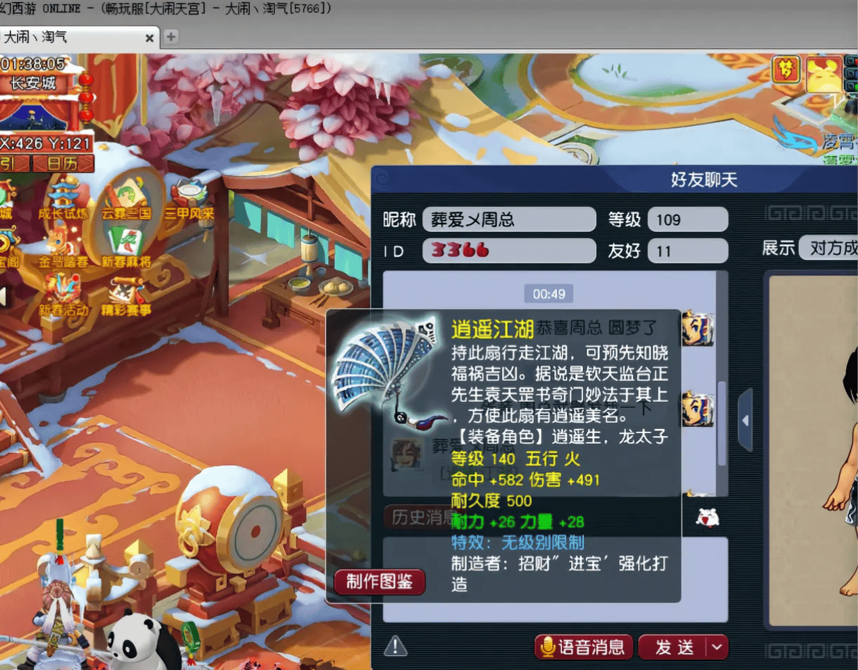不久前,【畅玩服-大闹天宫】的一位老板在鉴定140级武器时运势极佳,成功收获了一把初总伤685、附加力耐属性54点的无级别扇子。