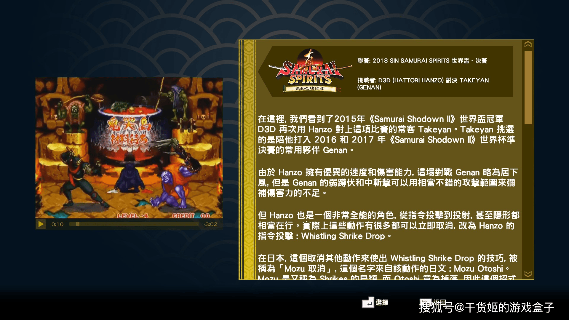 《侍魂NEOGEO合集》含金量最高就是博物馆内容了,收录了可以说是全部的游戏相关资料,除了常规的游戏内音乐和插画外,还有收录经典的历史比赛录像,玩家好似时空穿越,现场体验一把当年的比赛盛况。