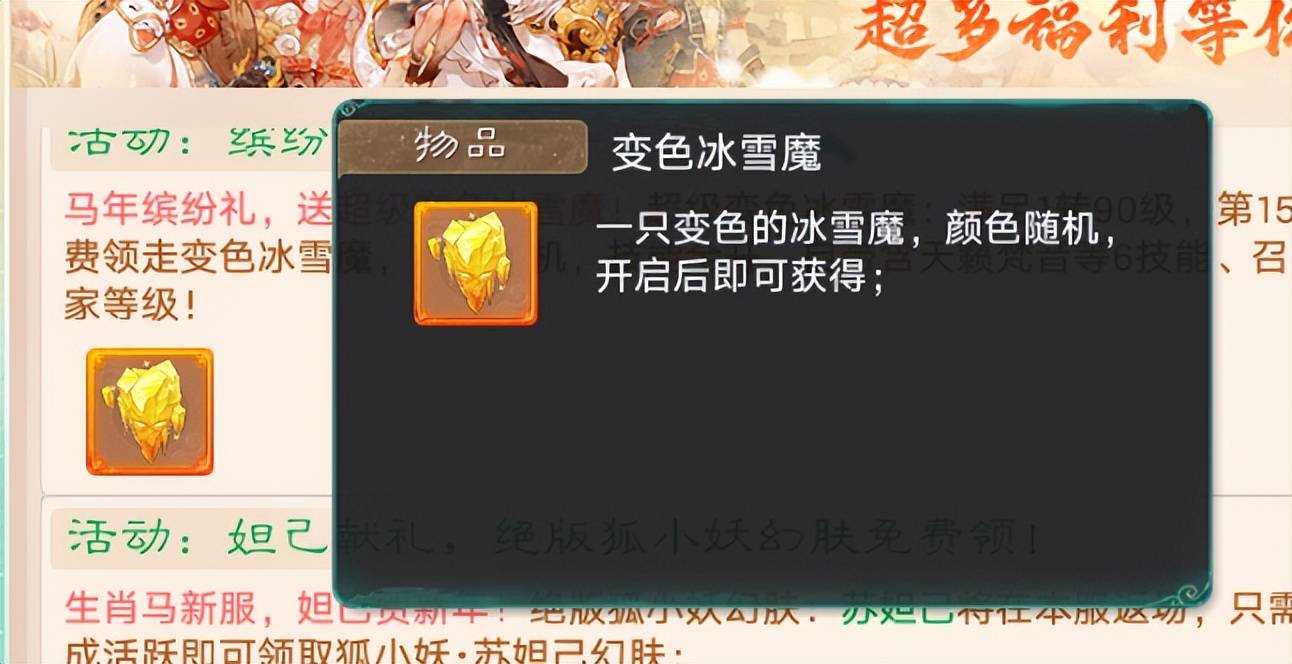 变色冰雪魔的含金量,就不用我多说了吧,交易服几乎人手一个,而且还可以摆摊交易。登录15天,满足1转90级,就能领走变色冰雪魔,技能全开,自带天籁梵音等6技能,还要什么摩托车啊,盘它盘它盘它!