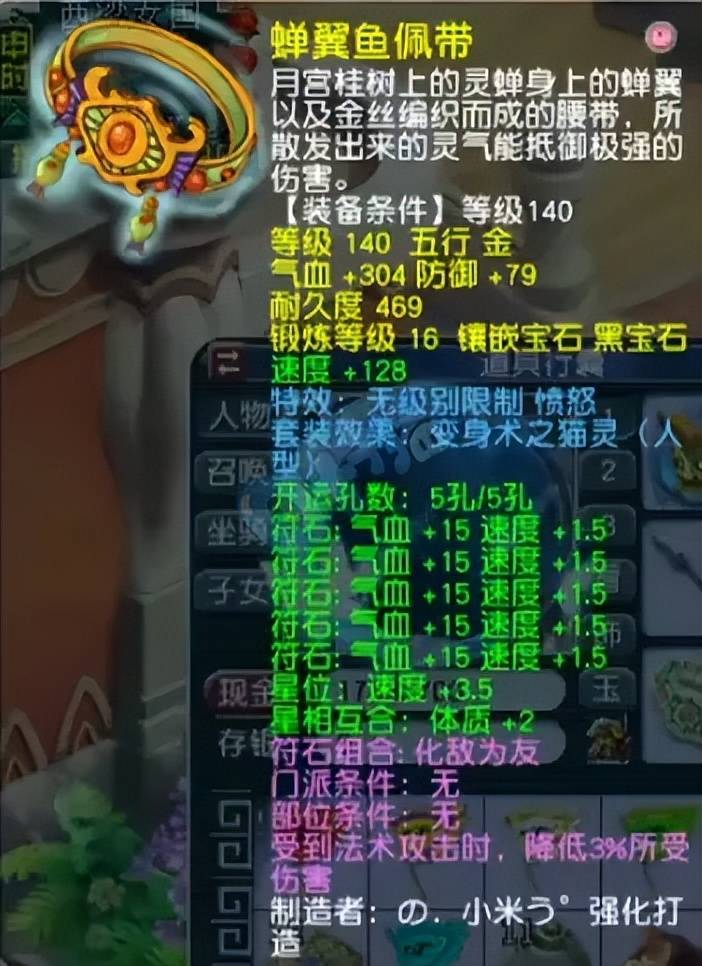 身上还有一条备用的140级无级别愤怒腰带,可根据不同的对手组合不同的装备搭配。
