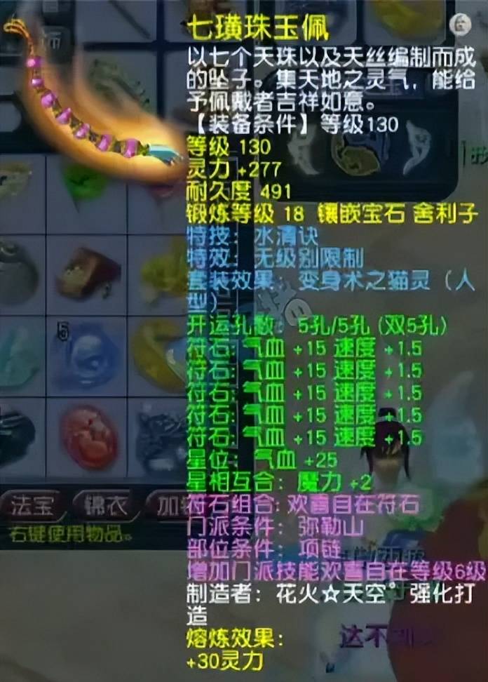 130级无级别水清项链,18锻+熔炼总灵307。该特技可以解除异常状态,可以确保己方输出的出手机会,接上源源不断的输出。