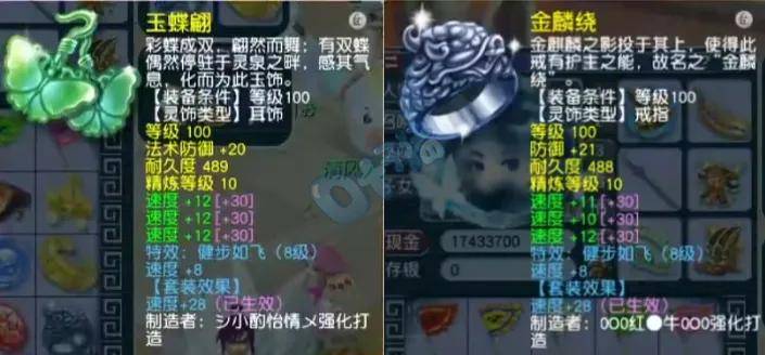 前排灵饰为六速度。耳饰上排法防20国标,下排速度共36爆6;戒指上排防御21爆1,下排速度共33爆3。