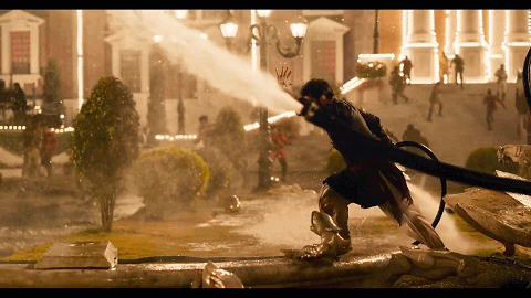 在印度商业动作片里,物理学早就不存在了,再加上堪称招牌的多角度特写、慢动作镜头,画面张力足到会让观众共情被打的反派们。最终这些夸张的动作戏,和男女爱情、复仇冒险等要素,以及一言不合就跳舞一起,构成了印度电影的“传统艺能”。
