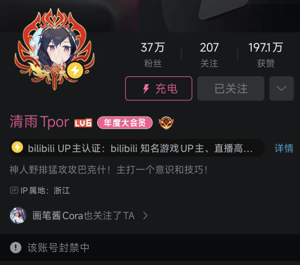 昨天晚些时候,因此事影响极度恶劣,清雨的账号被封了。