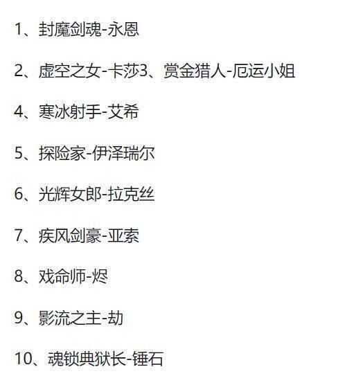 第八名是戏命师烬,第九名是影流之主劫,这个曾经可是faker的招牌英雄,创下了不少名场面,虽然现在已经没人在职业赛场上拿出来了,但是在路人局依然有很高的人气,最后说第十名魂锁典狱长锤石。这就是最受欢迎排名前十的英雄,对此你们有什么想说的吗?