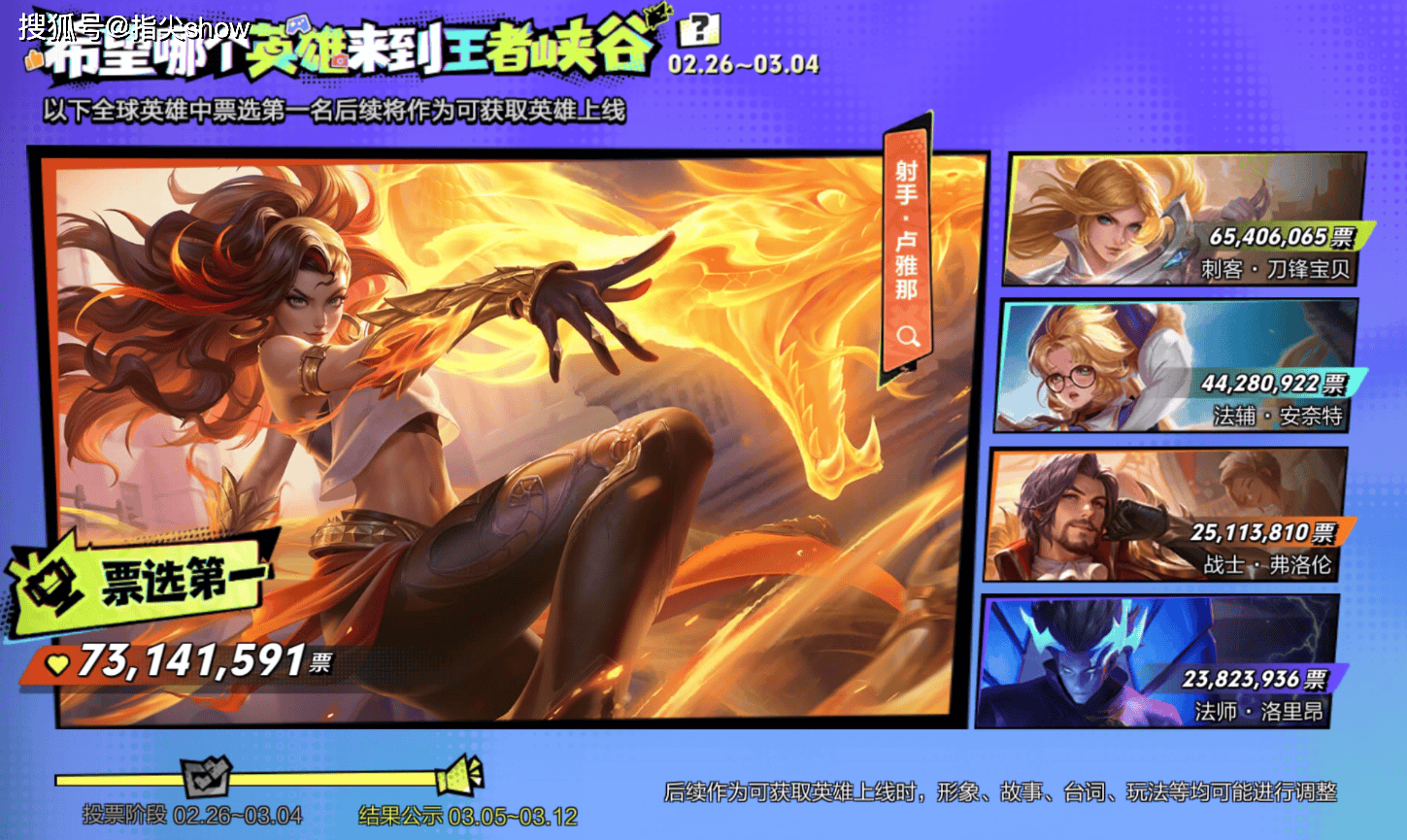 大家好我是指尖,3月4日英雄上线投票结束,王者峡谷将正式迎来全新的射手卢雅那,而上一个射手是孙权,期间也只是间隔了大禹、元流辅助和蚩奼。