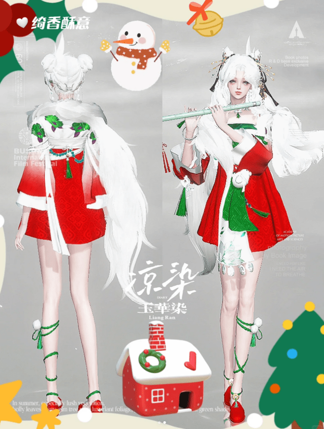 更有玩家利用签到送的上衣和染色材料,打造出了一身充满圣诞氛围的装扮。染色材料的巧妙运用,让“绮香酥意”这套时装圣诞氛围感拉满~因为整体着装采用了经典的红色和白色,让人一眼就能感受到圣诞节的温馨气息~