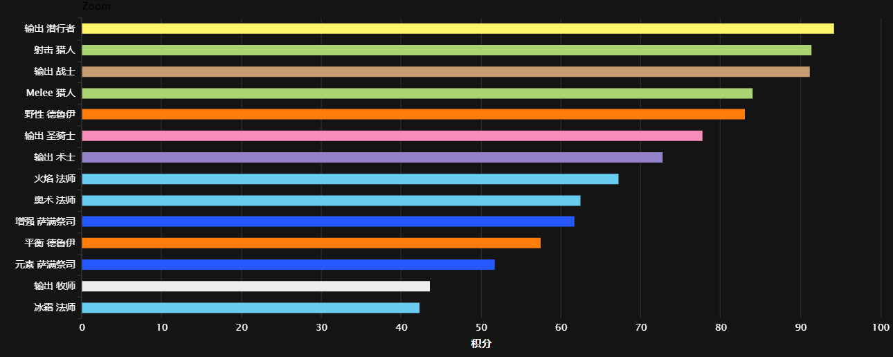 下图是WCL统计黑暗深渊前95%玩家的职业排名(所有BOSS):