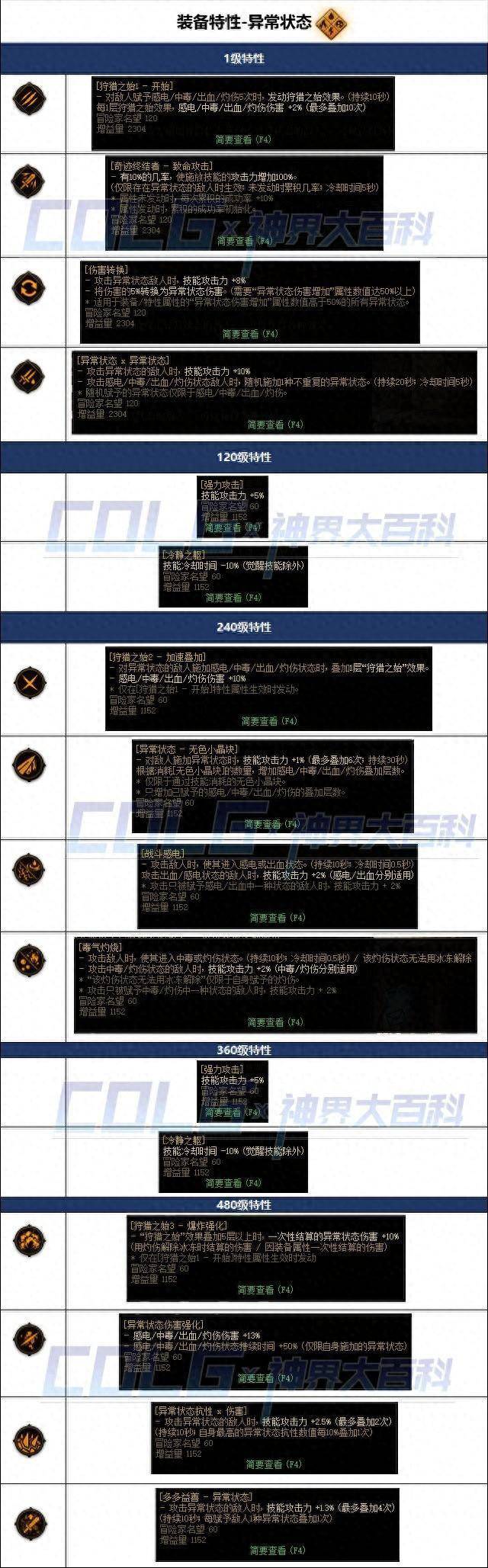 穿戴的神史诗等级总和达到1级时,解锁第1行特性,120级/240级/360级/480级时,依次解锁第2~5行特性。