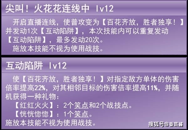 战技可以多次消耗战技点,提升【强化普攻Q】的伤害,最高叠20次;有几率在叠层过程中,恢复2个笑点和2个战技点,或者1个笑点。