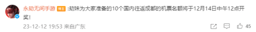 听说手游官方微博还搞了抽奖,抽了十个人送往返成都机票,这十位幸运儿当真是手游的天选之人,这下去成都可以玩嗨了!