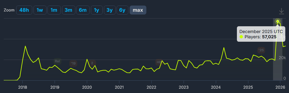 在长尾效应下,随着Steam越发膨胀的用户体量,这款游戏甚至在上线7年后再次创下了同时在线人数的新高。