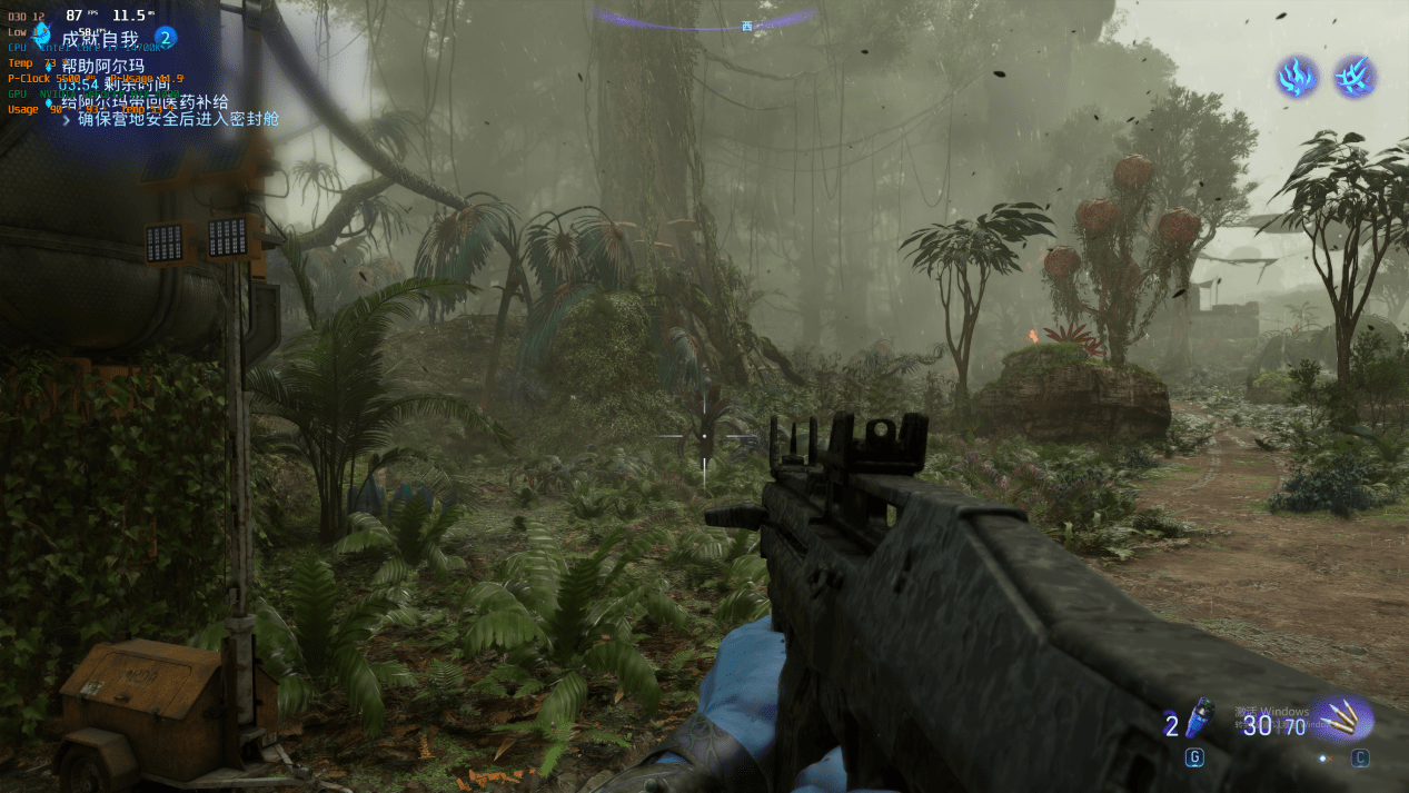 我们在PC端进行了一段时间的游玩,也对游戏内容有了一定程度的了解。游戏采用第一人称视角,背景设定在潘多拉西部边境,玩家扮演纳威族的一名孩子,在遭遇人类军事化公司RDA绑架后,你被迫接受了训练和同化。十五年后,你自由了却发现你在自己的出生地仿佛成了陌生人,在不断探索中,你慢慢寻回了纳威人了能力,发现了身为纳威人真正的意义,然后联合其他部落抵抗RDA,为守护潘多拉而战。