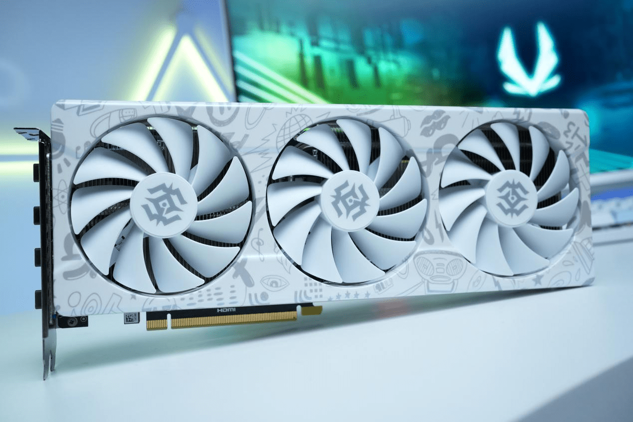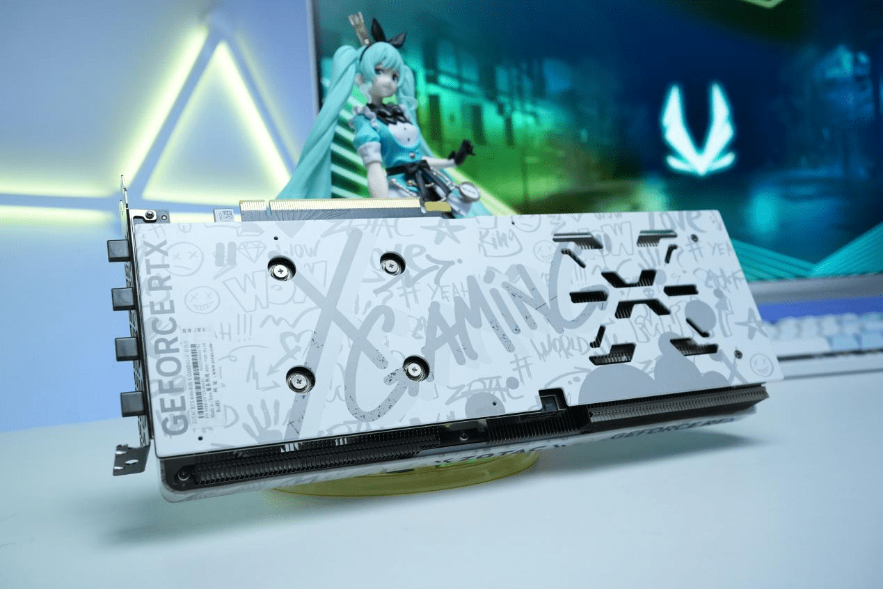先来简单介绍一下这三张显卡吧。首先是RTX 4060-8GB X-GAMING OC欧泊白,4060使用三风扇设计的确实不多见。清新淡雅的白色基底色上,采用多重特殊工艺处理,在显卡外观上呈现出如同欧泊变彩效应的视觉效果,充满神秘与梦幻之感。