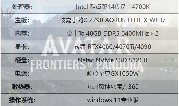 我们搭建了如下测试环境分别使用了三张显卡,他们是RTX 4060-8GB X-GAMING OC欧泊白、RTX 4070TI AMP AIRO SPIDERMAN以及RTX 4090 AMP EXTREME AIRO月白。游戏确认支持光追全局光照、光追阴影和光追反射技术,我们也是在全部开启后游玩。