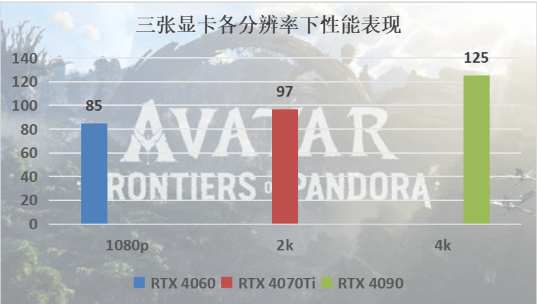 我们使用RTX4060在1080P低特效下开启FSR2.0质量,帧数有85还是非常惊人的,游戏的优化还是相当不错的。2k分辨率,高画质,FSR2.0质量下,RTX4070Ti帧数来到97。最后使用RTX4090,全特效画质极高的状态下其他设置不变120帧。