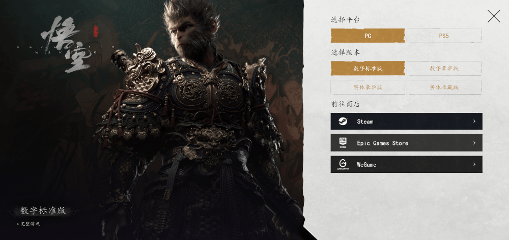 游戏科学官网显示,目前游戏共四个版本,分别是售价268元的数字标准版,328元的数字豪华版,820元的实体豪华版和1998元的实体收藏版,可以提前预购,不过实体版均已售罄。