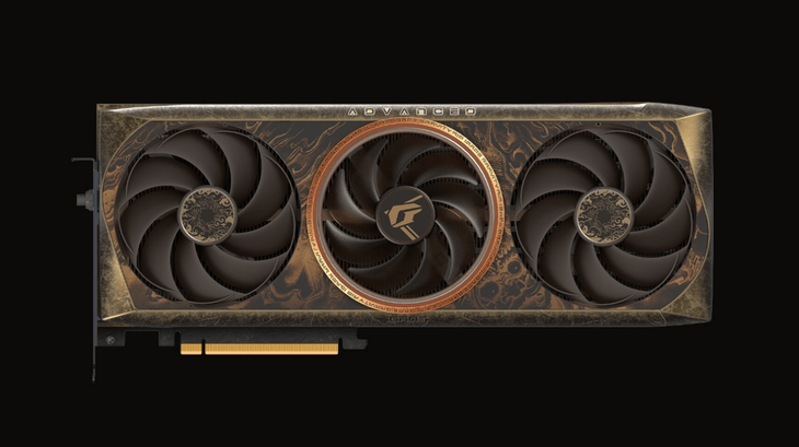 「iGame GeForce RTX 4080 SUPER Advanced 黑神话:悟空」定制版显卡以“iGame Advanced”为基础进行全新的设计,它巧妙地将《黑神话:悟空》游戏中的壁画元素融入其中,以“仿古”作为设计主题,展现出一种独特的韵味。散热外甲部分,更是经过无数次的调色与打磨,以及多道工序的精心打造,才最终呈现出如上古法宝般的视觉观感。它如同如意金箍棒般,带有久经沙场的沧桑感,散发出强大而神秘的气息,令人叹为观止。这款显卡是目前DIY硬件当中唯 一实现“仿古”量产化的硬件装备。这一创新突破不仅体现了DIY硬件在工艺上的新高度,更为玩家带来了前所未有的使用体验。