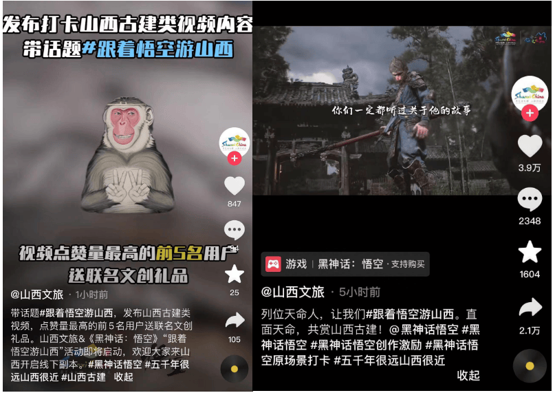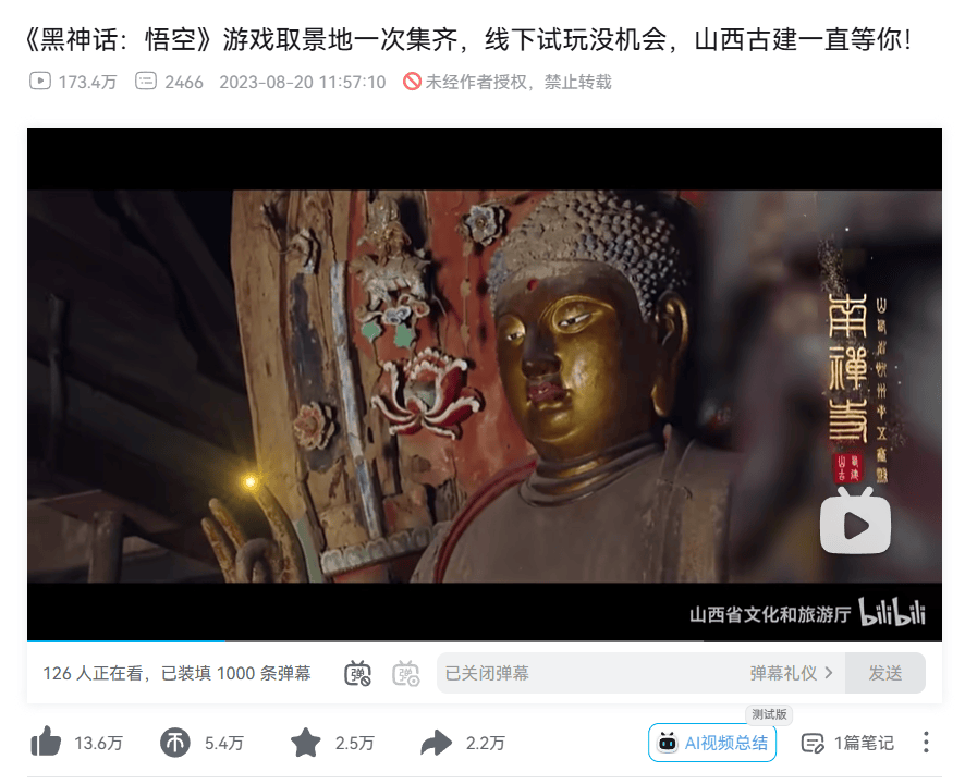 山西文旅,显然也稳稳接住这“泼天的富贵”,结合预告片和山西的古建筑出了多个宣传视频。目前,该视频已有173.4万的浏览量。