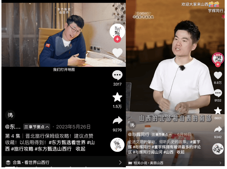 据官方数据统计,“与辉同行”山西行话题阅读量超3亿次,是2023年“东方甄选”山西行的1.5倍,总观看人数超4560万,多个话题登上抖音、微博热榜,山西又一次“火出圈”。