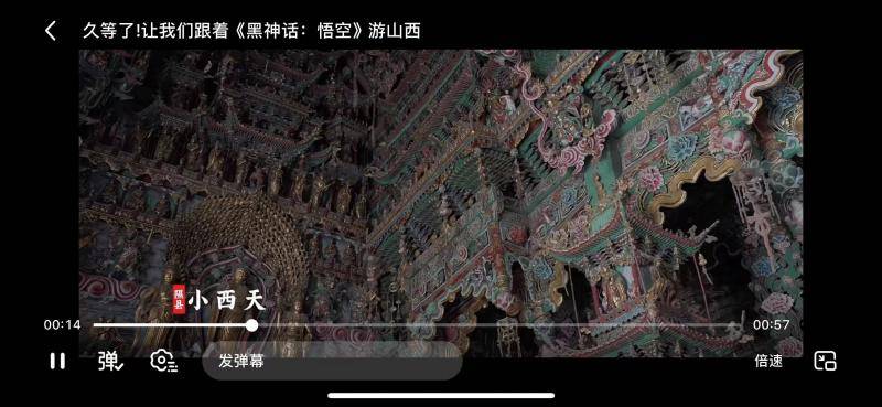 目前,《黑神话:悟空》的取景地山西、重庆、襄阳、阆中等多地文旅已借势展开传播。社交媒体上,不少游客已经分享了他们探访游戏中古建筑实景的经历。在某社交平台上,山西省文化和旅游厅官方发布了“久等了!让我们跟着《黑神话:悟空》游山西”的宣传片,里面介绍铁佛寺、玉皇庙、小西天等取景地。还有网友弹幕支招说:“视频都做了,配个英文(字幕)啊,扩大影响力。”