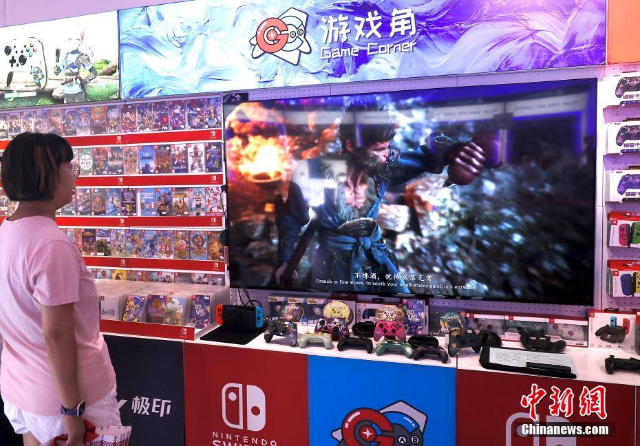 8月20日,由游戏科学自主研发与发行的首个国产3A单主机游戏单主《黑神话:悟空》全球同步发售。《黑神话:悟空》是一款以中国神话为背景的动作角色扮演游戏,取材于中国古典名著《西游记》,玩家将扮演“天命人”,探索昔日传说的真相,重走“西游之路”。图为市民在北京一家主机游戏店内试玩《黑神话:悟空》。中新社记者 易海菲 摄