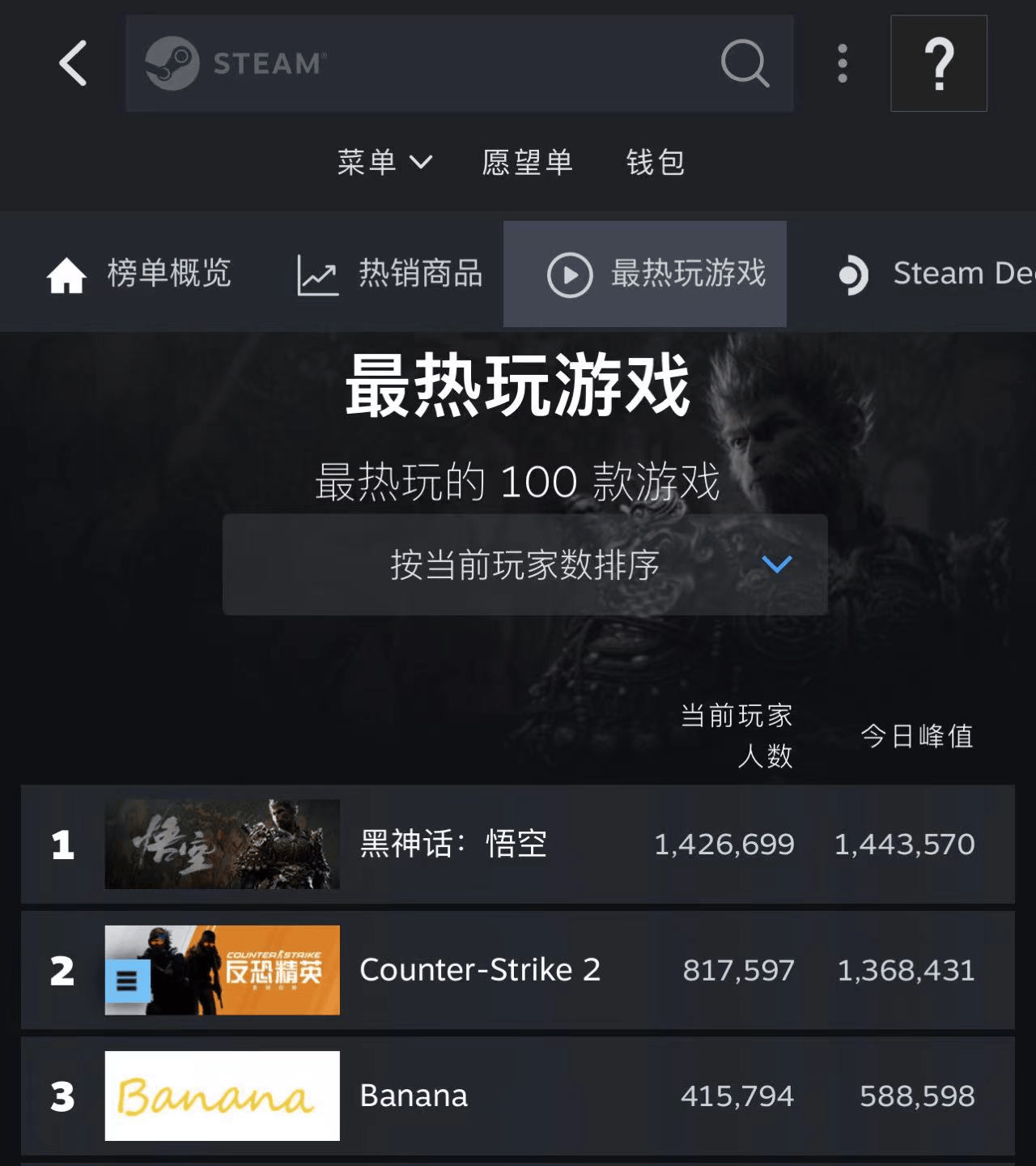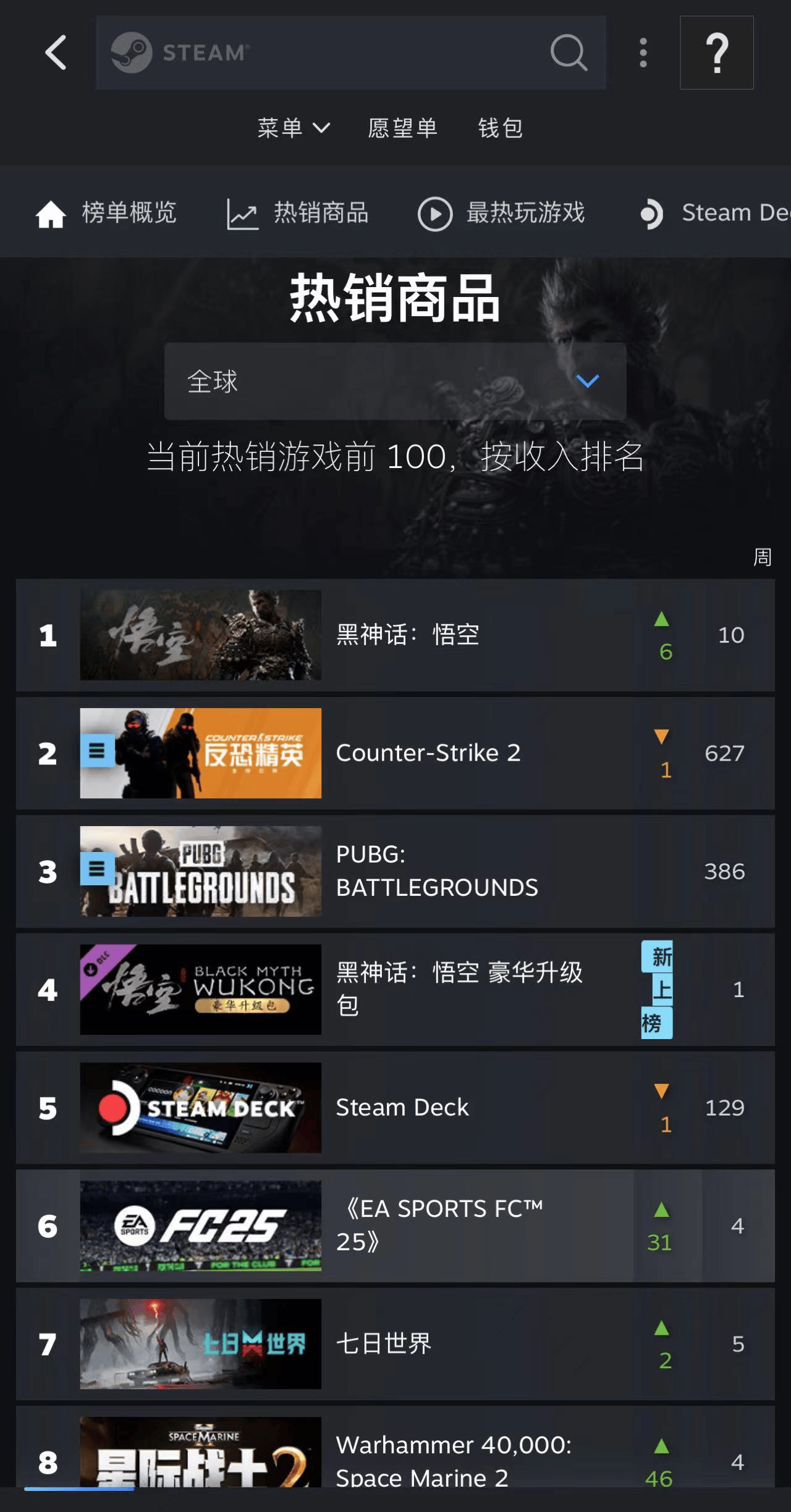 8月20日,红星资本局在游戏平台Steam看到,按照收入计算,当前《黑神话:悟空》排名全球第一,已经有10周排在热销游戏榜前100名。