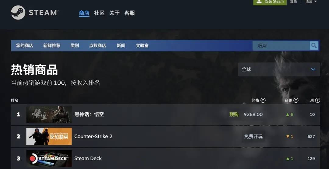 与此同时,游戏在线人数也屡创新高,根据Steam平台每15分一次刷新的游戏在线人数榜单,10时20分,《黑神话:悟空》在线游玩人数达到31.26万人,登陆Steam在线热玩榜排行第三;10时35分,《黑神话:悟空》以93.57万人的在线游玩人数超越《CS2》排行首位。