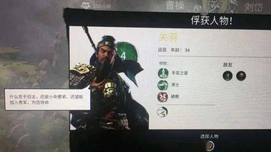 一生忠义无双,为了大哥刘备“千里走单骑”,死后人人尊奉的关羽,在游戏中战败被俘之后,却能说出“什么忠于旧主,还是小命要紧,还望能加入贵军”的墙头草台词。