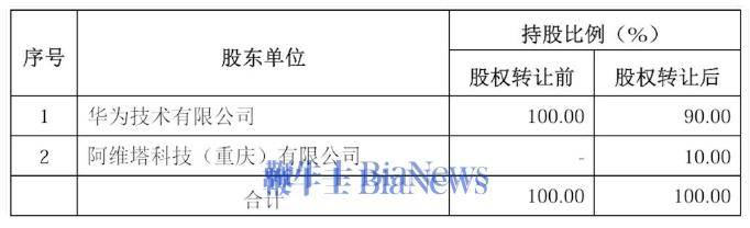本次交易后,阿维塔科技对引望持股比例为10%,华为对引望持股比例为90%。