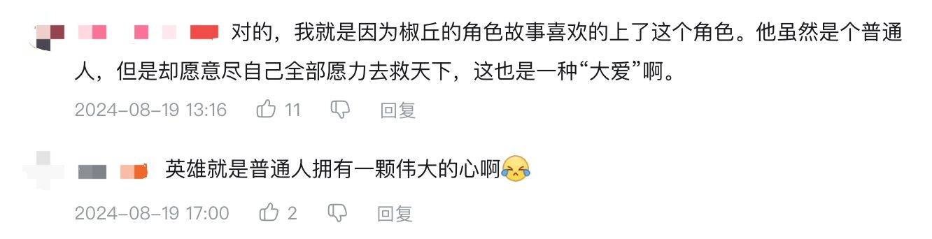 从椒丘身上,不仅可以看到医者仁心,更多的,是能够让身为“普通人”的玩家共情到他。椒丘的故事表现出了“凡人感”,他没有神力,只是以一己之力尽力去救助;面对挫败,他也会逃避,但最终他还是遵从信念,尽全力做自己能做的事,表明“普通人”也有大爱。