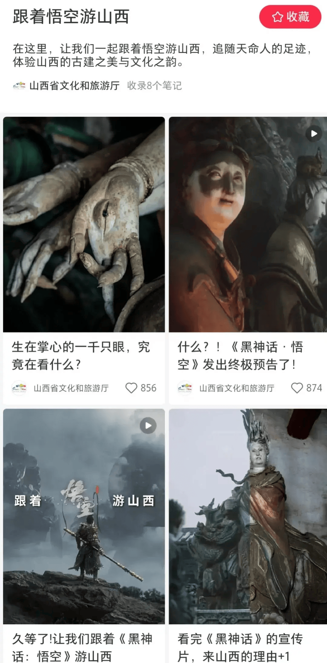 今年6月,游戏科学发布了定档预售视频,联手的是《流浪地球》特效团队“MOREVFX墨境天合”。很快,山西省文化和旅游厅在B站、小红书等平台发布了《久等了!让我们一起跟着〈黑神话:悟空〉游山西!》,展示了游戏中的真实取景地,包括小西天、玉皇庙、铁佛寺等文化古迹。