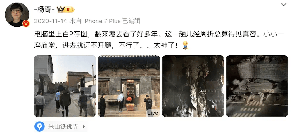 当年11月,《黑神话:悟空》的美术总监、游戏科学联合创始人杨奇来到山西。“崇庆寺的十殿阎罗,铁佛寺的二十四诸天,玉皇庙的二十八星宿,此行总算是圆了念想,顺利收工。”他在微博发布了山西之行的见闻,虽然遇到了国保单位的严格管理,但好在最终得偿所愿。
