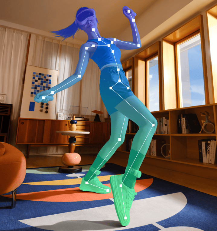 就追踪精度方面,体感追踪器经历了 400+ 小时、100+ 组动作姿态、超 1 亿帧的数据训练。