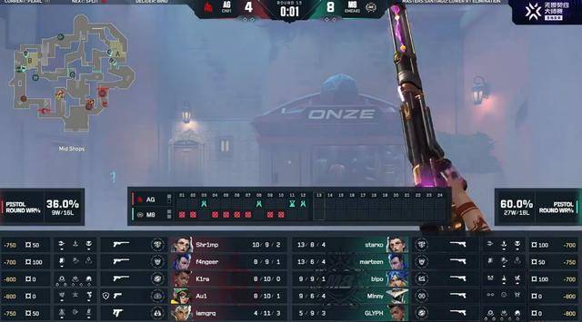 AG全员打嗨状态全起,AG打出五连胜,第6回合面对M8的A二楼包,iamgrq就差一秒就能强拆,但可惜雷兹的惊喜翻腾给炸开,AG遗憾输掉这分。