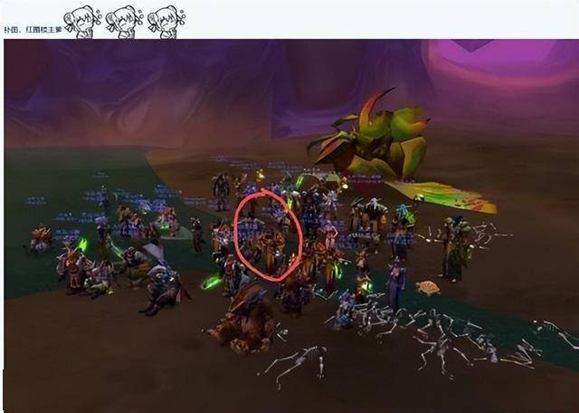 最巧的是,这里居然还能碰到同团的朋友,这哥们因为打奥妮克希亚出了术士的套装头,旧版的模型看起来像是耍蛇人的头巾,被大家称作“阿三”。虽然ID已经无法记得,但外号一出仍然能搭上记忆,甚至还有其他战友保留着当时开荒TAQ的合影,在图中圈出了父亲的角色,帖子里满是旧日的气氛。