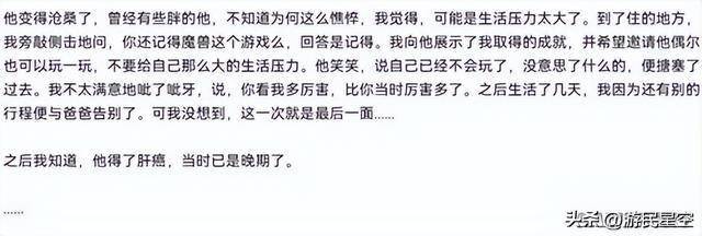 随后翻看评论区我才发现,或许,能够在原帖下回复一句“回归时光服”已经是“魔二代”这个话题里最好的结局了,有的孩子因学业紧张需要严加看管,也有年轻一代对魔兽并无兴趣,还有人永远地失去了和父亲一起玩魔兽的机会……