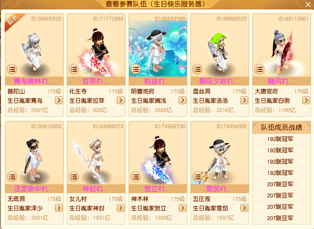 生日快乐服务器则由于缺少物理老板,并没有选择携带凌波城,只带了大唐、神木两个输出点。不过,在高战神的加持下,他们的PK实力不容小觑,稍不留神就可以创造奇迹!再加上他们这次携带了无底洞参战,没准会上一套全新的点杀阵容。